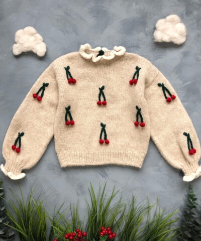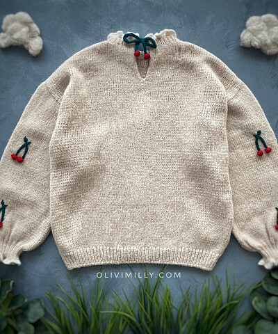 Comfortable Cherry pullover with voluminous sleeves.