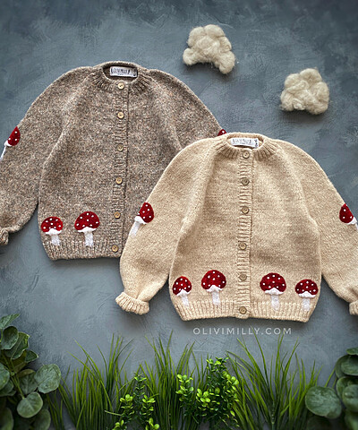 Cardigan „Mushrooms” is suitable for both boys and girls.